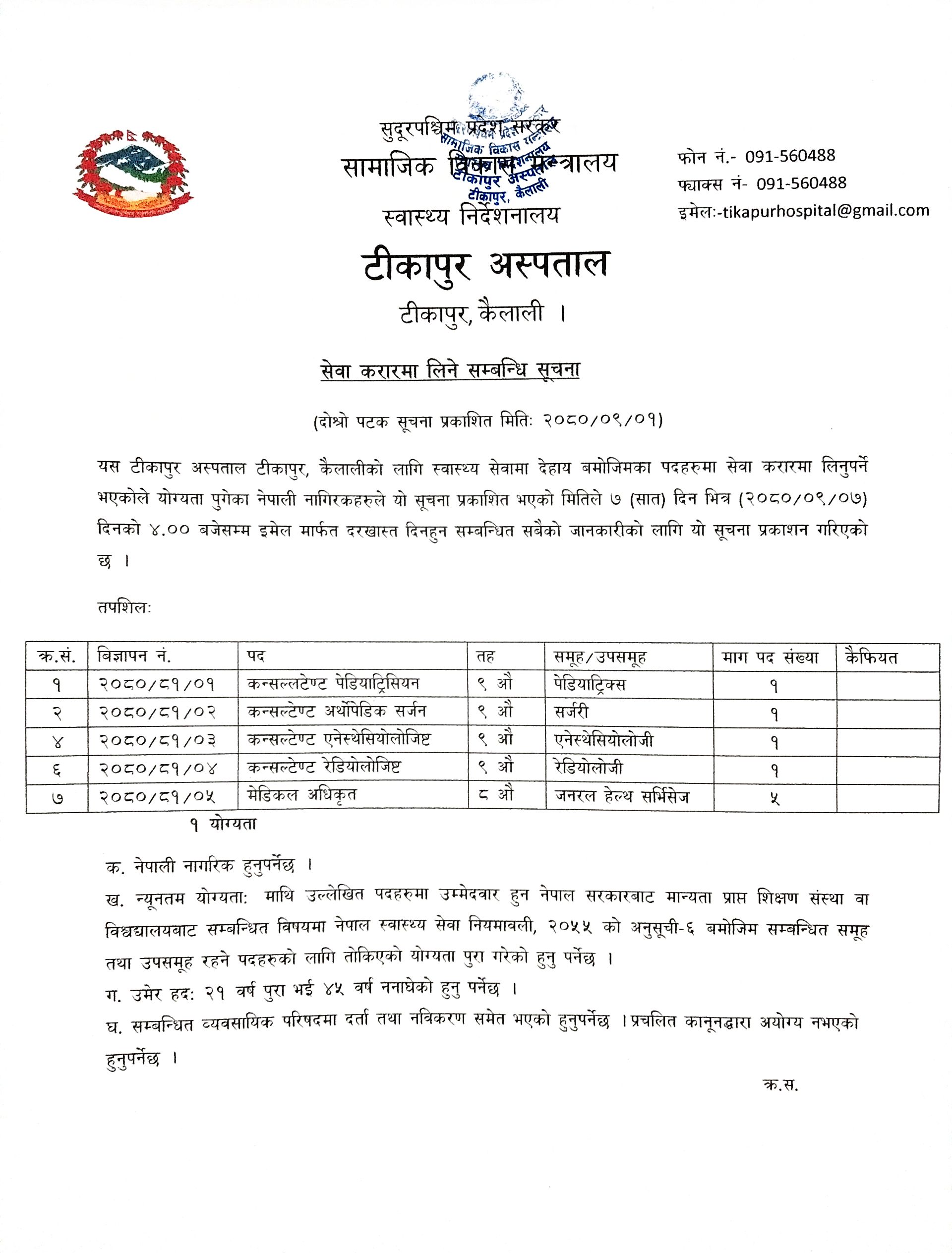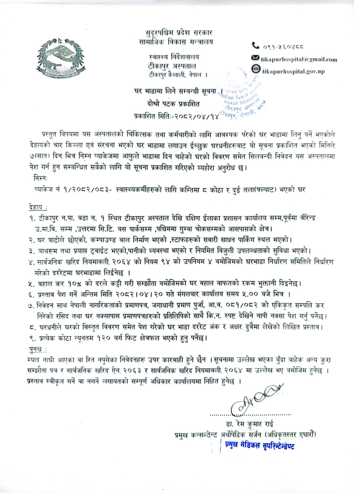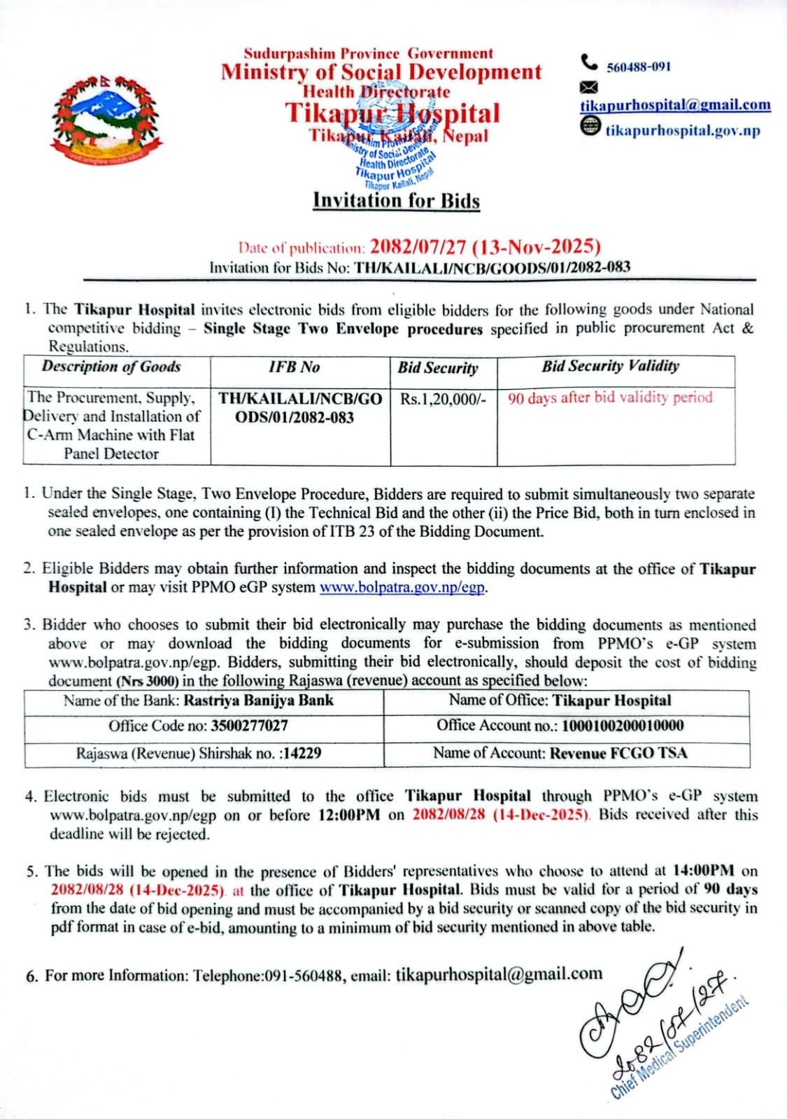 | Tender Notice of Tikapur Hospital Pharmacy . | 2082-08-09 | ||