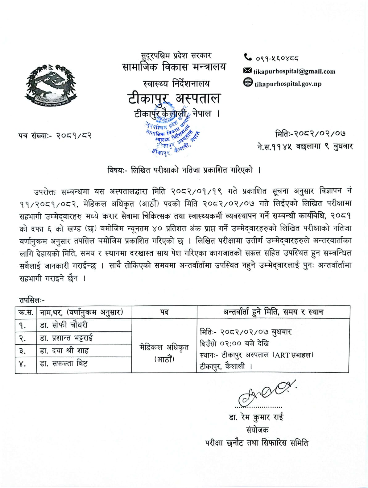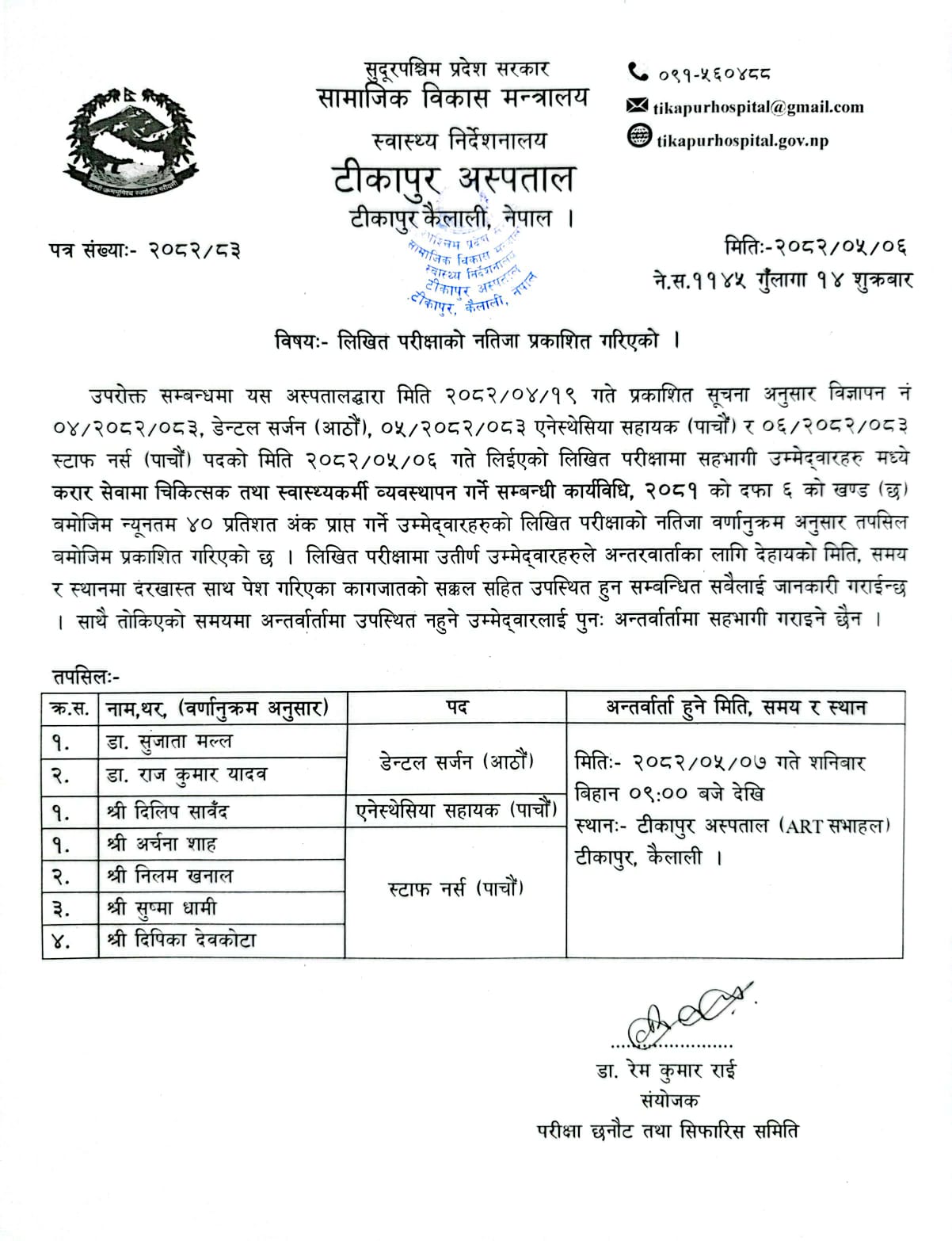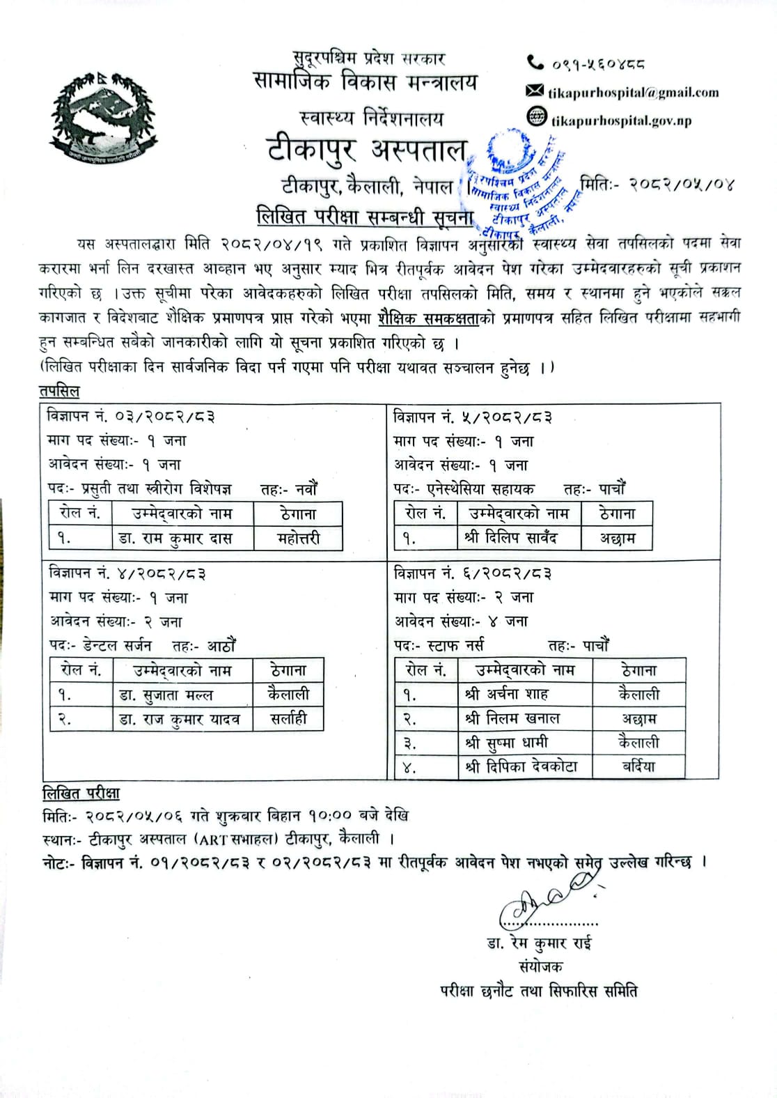 | Tender Notice of Tikapur Hospital Pharmacy . | 2082-08-09 | ||